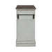 Liberty Furniture Magnolia Manor Bar Cart in Antique White & Weathered Bark 244-AT3000. The Magnolia Manor bar cart is a stunning blend of elegance and functionality designed to elevate your entertaining space. Crafted with excellence using Rubberwood solids with White Oak and Birch veneers, this piece features an Antique White finish with a Weathered Bark finished top. The top features two fold-out panels, providing additional prep space whenever needed, while a black laminated service ensures effortless cleanup, making hosting gatherings a breeze. Convenience meets sophistication with the inclusion of a hanging towel rack on both ends, adding a touch of practicality to the cart's design. Two drawers, framed with bead molding and accented with Antique Pewter knob hardware, offer discreet storage for bar essentials, keeping them within easy reach. But the functionality doesn't end there – a sliding door with bead molding reveals a thoughtfully designed interior. On one side, an adjustable wine bottle shelf provides ample storage for your favorite vintages, while on the other side, a fixed wood shelf offers additional space for glassware and accessories, with stemware storage conveniently located above. The bar cart's design is further enhanced by chamfered pilasters and faceted turned legs, which gracefully flow to shaped bracket feet, exuding a sense of refinement and sophistication. Whether serving as a focal point in your dining room or as a stylish addition to your living space, the Magnolia Manor Bar Cart is sure to impress with its impeccable craftsmanship and timeless allure. Elevate your entertaining experience with this exquisite piece, a testament to both style and functionality.