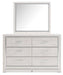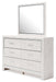 The epitome of fashion-forward design, this dresser with mirror set is a beautiful blend of comfort and luxury. Shiny chrome-tone accents, a pearlized finish and mosiac pulls bring a glam touch to the richly rustic appearance. Six smooth-gliding drawers provide plenty of storage space for your wardrobe needs.