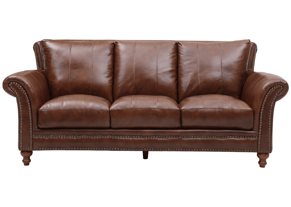 The Butler collection brings authenticity mixed with elegance. This beautiful piece of 100% Top Grain furniture is the focal point of any living space. The expert craftsmanship of the beautifully sculpted rolled arms, detailed nail-head trim, ornate wooden feet, and long lasting comfort make the Butler a one of a kind silhouette.
