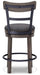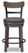 Bring a relaxed yet refined sense of good taste to a space with this upholstered swivel bar stool. The sturdy wood frame with contoured backrest is beautified with an antiqued gray wash finish that’s easy on the eyes. Rest assured, this bar stool caters to your comfort with a cushioned seat with gray textured fabric accentuated with nailhead trim. Sensible swivel design keeps you in the flow of conversation.