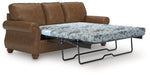 Everyone can have the best rest in the house with this queen sofa sleeper. Its nailhead trim puts the finishing touches on the traditional roll arms you love. The sofa's comfy, durable cushions—wrapped in a rustic yet sophisticated faux leather—keep you feeling relaxed, while its turned legs show that style and quality flow from top to bottom. A pull-out queen mattress made with quality memory foam comfortably accommodates overnight guests.