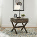 Liberty Furniture Lennox Sofa Table in Brown 871-OT1030. Accent your contemporary space with the Lennox drawer sofa table. Crafted of rubberwood solids with split heart white oak veneers, this piece features a weathered chestnut finish, appealing planked tops, two full extension fully stained interior drawers, flanking a tempered glass insert, a bottom shelf for additional storage, appealing antique pewter pull hardware, anchored by angled leg base. This simple yet sophisticated sofa table will be a great addition to your home.