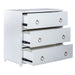 Liberty Furniture Midnight Accent Cabinet in Wire Brushed White 2030WH-AC3432. Turn your house into a home with the eclectic East End accent cabinet. Crafted of Acacia Solids and veneers, this piece features a wire brushed white finish accented with brass ring hardware. This cabinet offers three deep full extension drawers for storage and is versatile enough to work in any room, from your entry hall to your bedroom. Unique and timeless, allow the East End accent cabinet to bring inspirational design into your home.